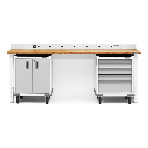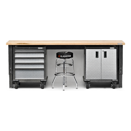 View Full DetailsThe 8-ft. solid maple work surface stands out with room to dock up to three Gladiator modules underneath. Paired with a comfortable Gladiator stoo...