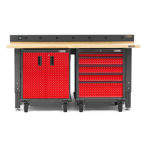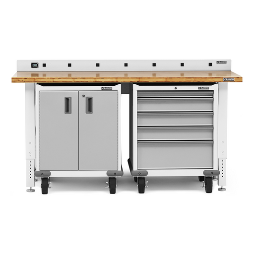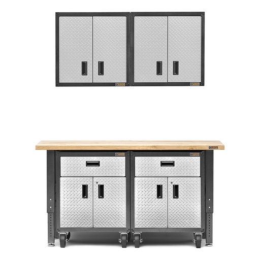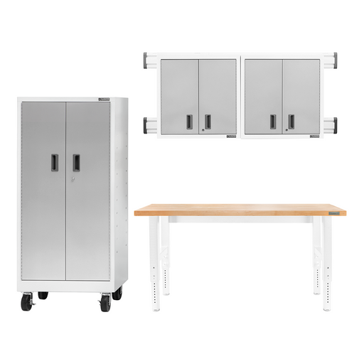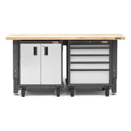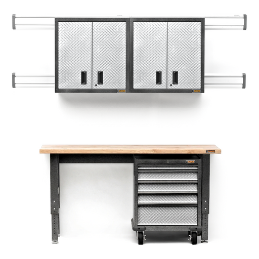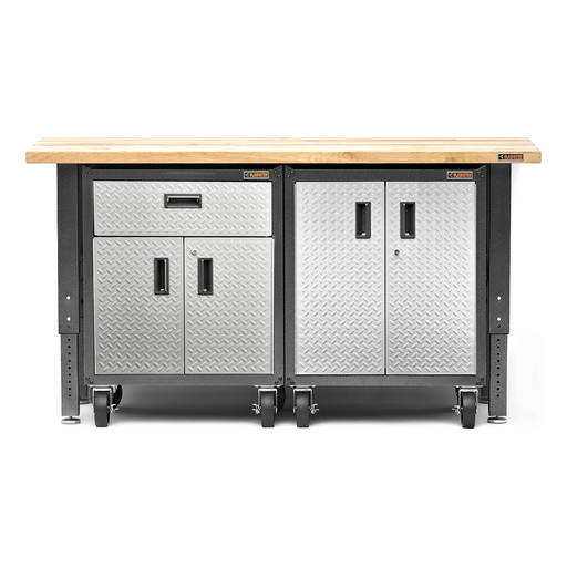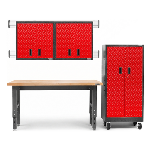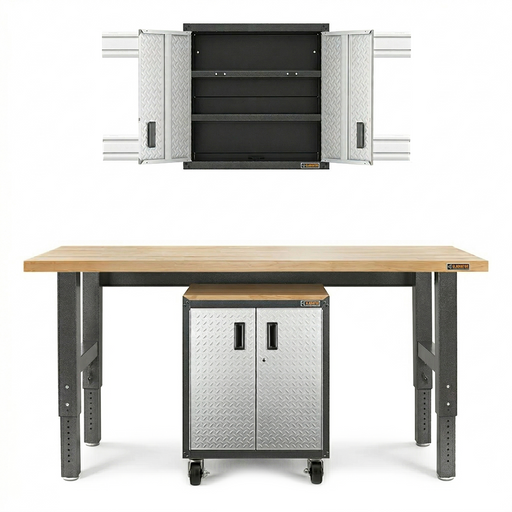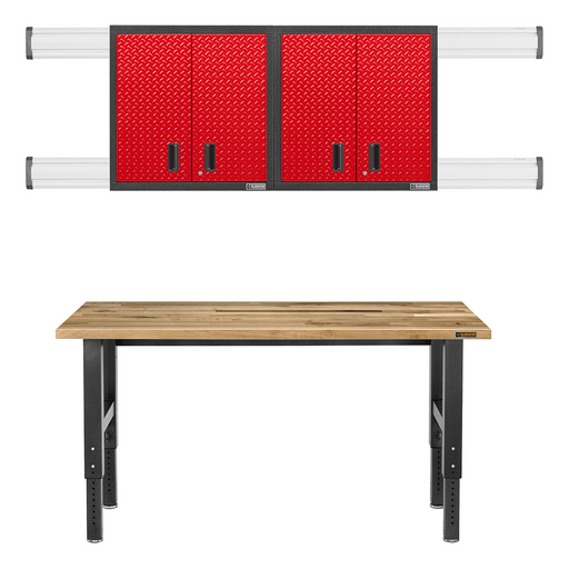 View Full DetailsKickstart your garage organization with this high-quality cabinet and workbench set. The 6-ft. height-adjustable workbench offers ample workspace ...