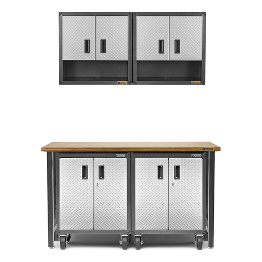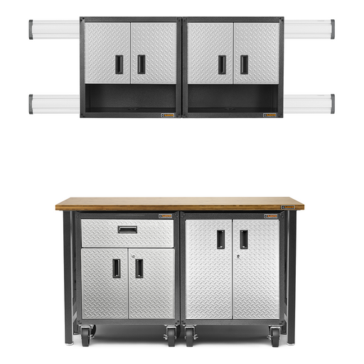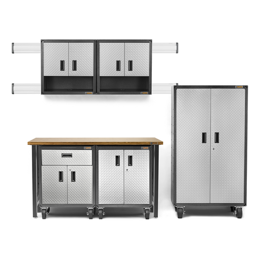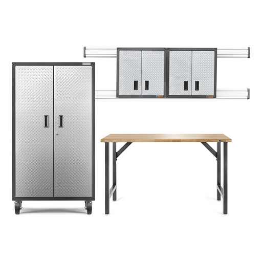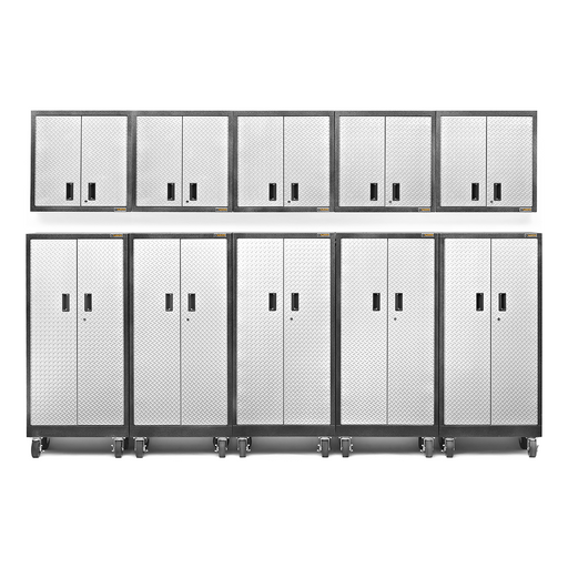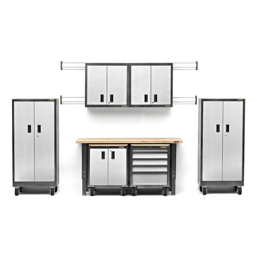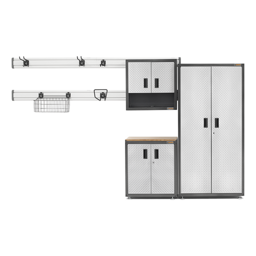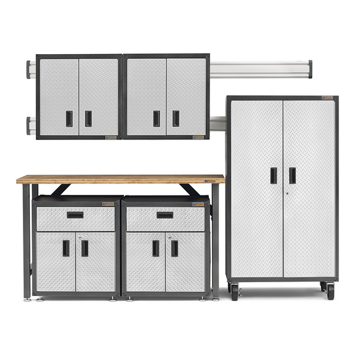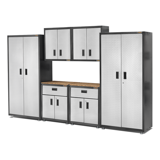 View Full DetailsCreate your ideal workspace with this complete Gladiator system designed for quick, easy assembly. Featuring heavy-duty steel cabinets with Silver...