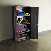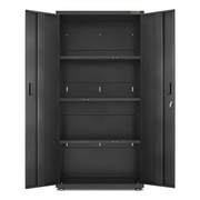 At six-feet tall and one-and-a-half feet deep, the Ready-to-Assemble Large GearBox accommodates supplies of various sizes. Store four levels of gardening tools, paint supplies or automotive gear in this sturdy storage cabinet. The design makes assembly fast and easy, while an optional Wall Bracket Kit lets you get the cabinet off the floor using Gladiator® Wall Systems. Not compatible with caster kit.